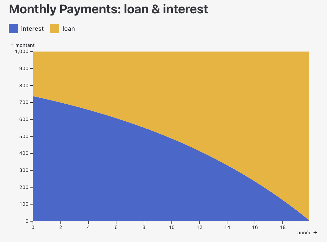 Let’s assume that I pay every month 1,500€ over 20 years. The amount of the loan is 266,000€.